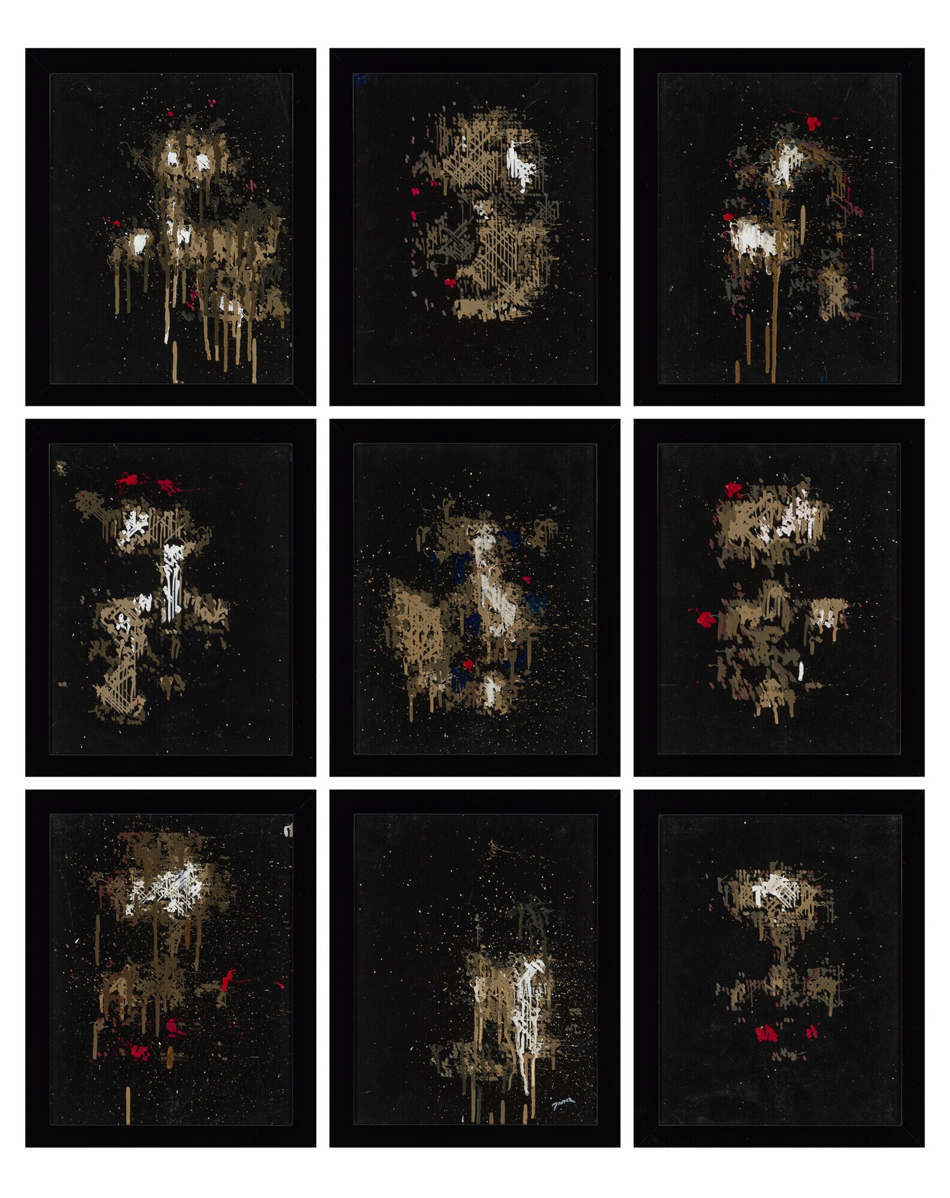 另一个值得注意的是范·阿曼(Van Arman)新兴面孔(2017年),来自同时使用两个AI程序的系列,该系列被指示绘制人脸,而另一个则在将图像识别为人脸后立即停止工作。结果是令人困扰的,抽象的肖像,这些肖像是神经网络创建的第一批绘画之一,该绘画是从数据中处理和学习的一种AI。