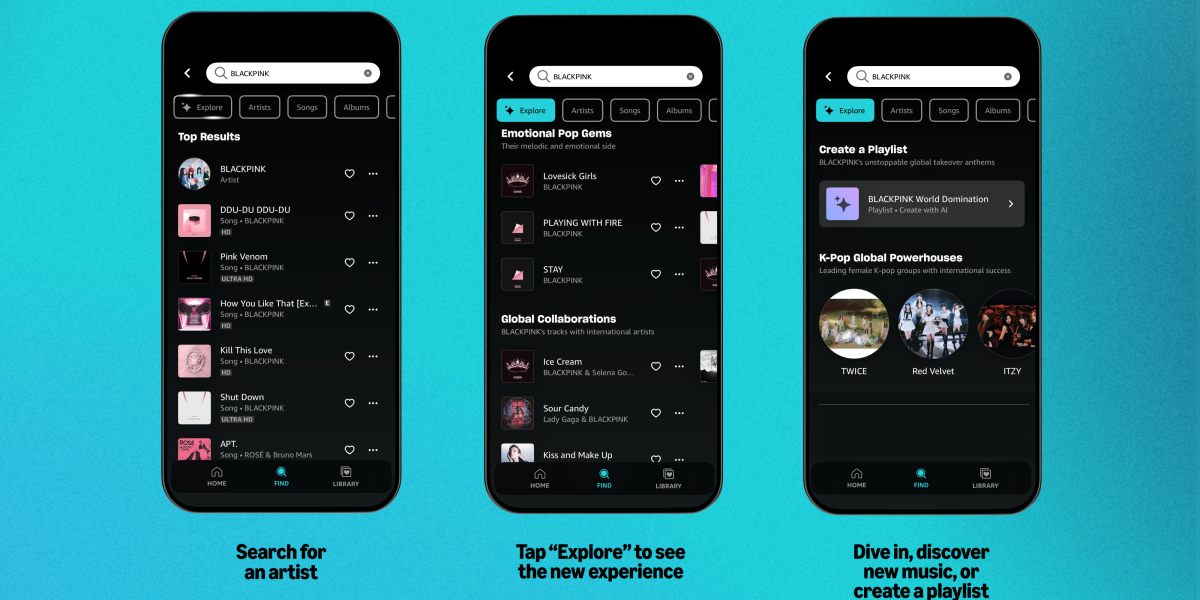 正在首次亮相新的AI驱动搜索体验,该体验可以增强亚马逊音乐应用程序的音乐发现,从而将每个搜索变成一个更深入地研究您最喜欢的艺术家世界的机会。现在,您将看到带有更丰富建议的AI增强结果,包括精心策划的音乐集来解锁更深层次的发现领域。而且,您可以将搜索结果用作启动板来创建AI生成的播放列表,以捕捉艺术家的魔力。