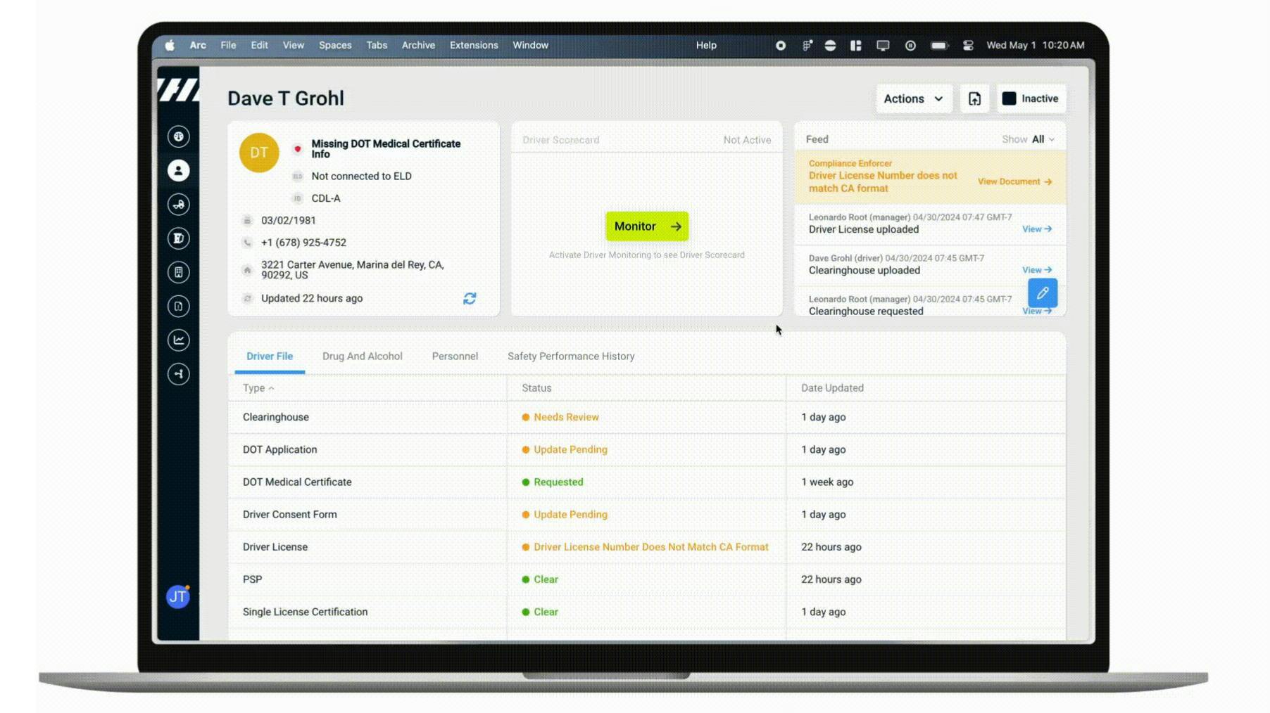 在车队领导者将其合规文件扫描到系统中后,将其存储并根据合规性,安全性或维护进行分类,例如使用更新的驾驶执照或维修收据。