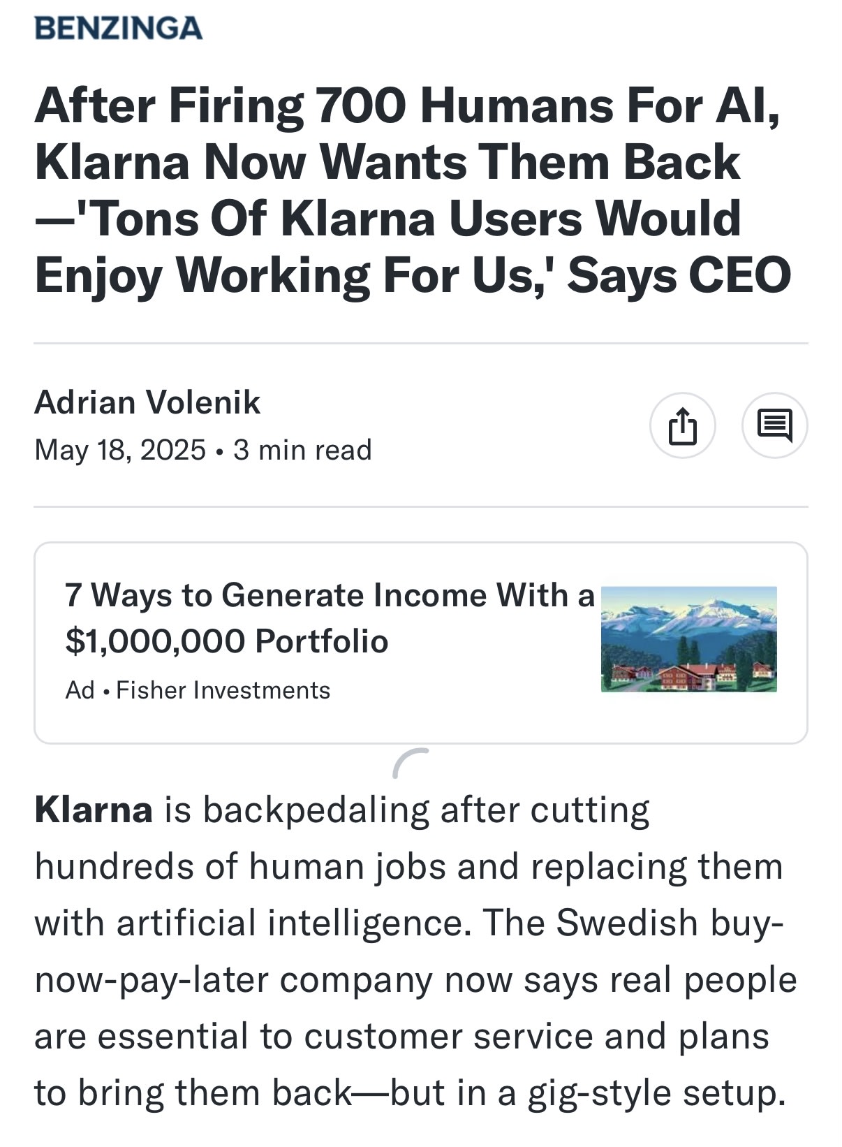 尤其是克拉纳(Klarna)在这一方面的曲线领先于曲线,大约在时尚之前就吹牛了。他们是第一个宣布AI裁缝,自豪地大肆宣传一段时间的人之一,并且在第一个意识到他们已经搞砸了。