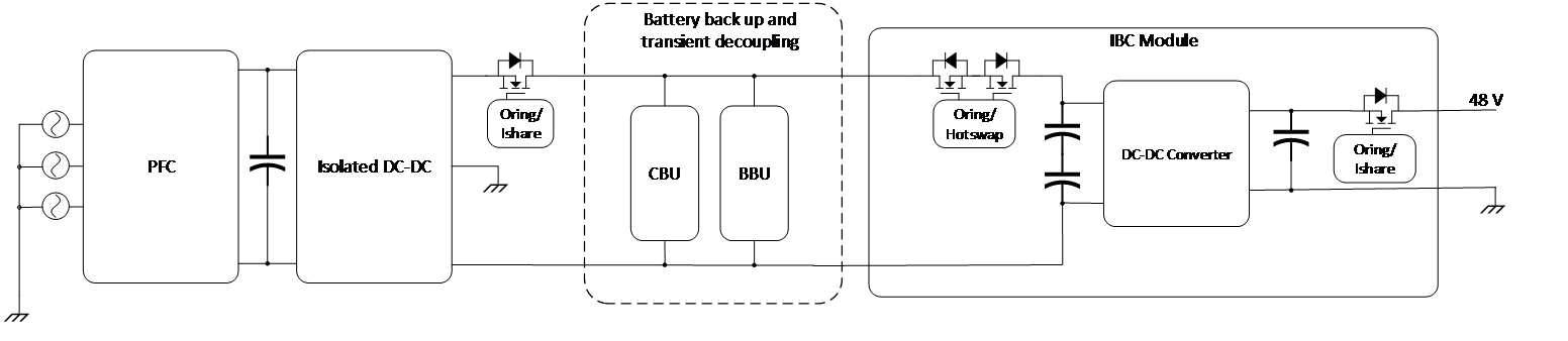 数据中心内部的服务器机架通常具有大约1兆瓦。机架功率的增加增加了当前处理能力,超出了当前DC总线功率体系结构的实际限制。例如,为了为1 MW架提供动力,如今S 48 V分配系统将需要超过20,000安培的电流。传递此电流的铜舱的大小和成本是不现实的。