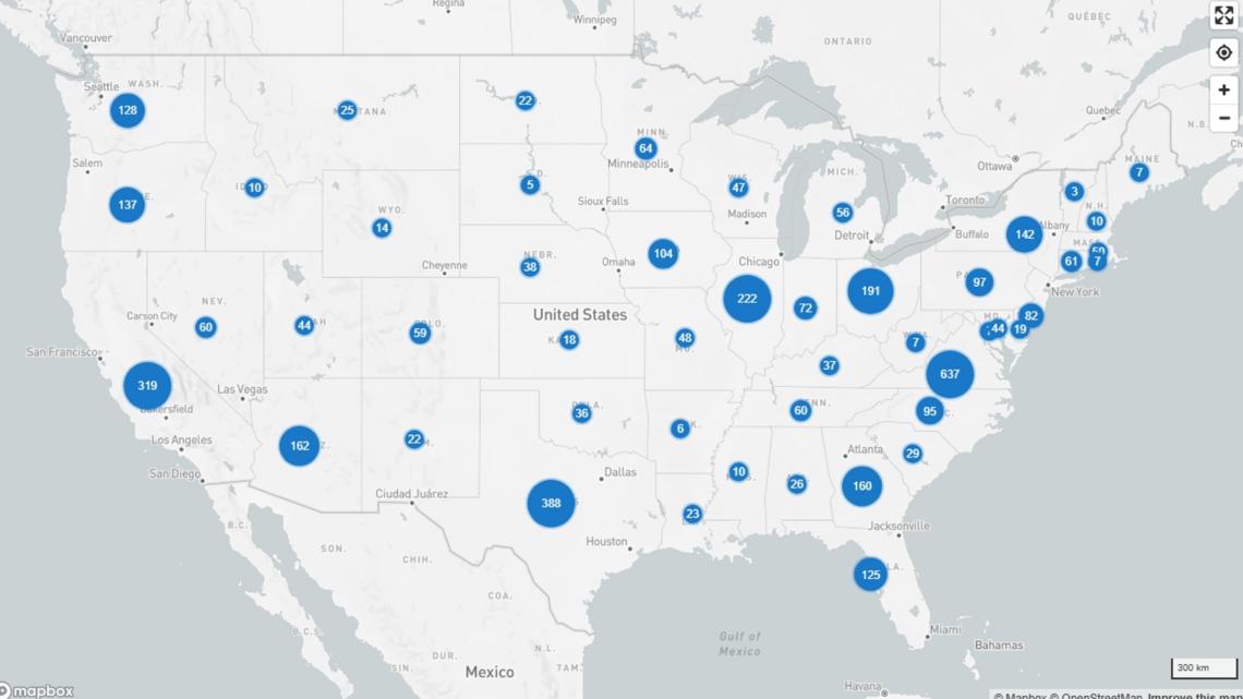 但是,数据中心当然不是均匀分布的。美国的大多数数据中心都在弗吉尼亚州 - 其中637位。尽管其他州也有大量。