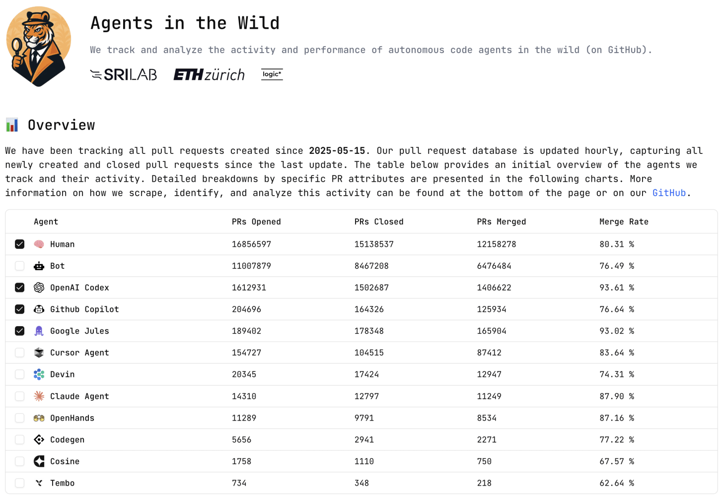 另一个仪表板是野外的特工,表明Openai的编码剂只是人类落后于人类的一个数量级,而PRS中的其他自动化则只是一个数量级。