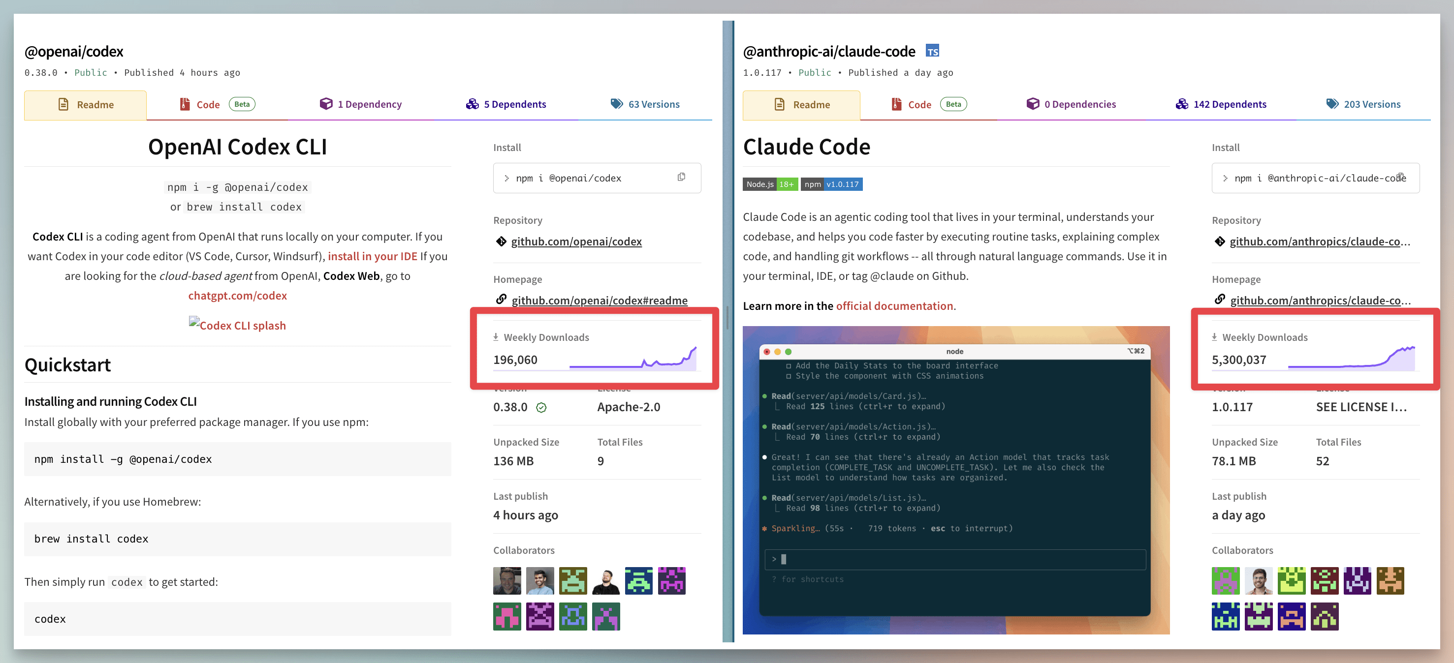 与此的上下文是Claude代码是远的与OpenAi的CLI代理码相比,下载更多,但默认情况下,它并不以相同的巧妙方式使用分支机构中的代理名称。Claude代码在上周在NPM上的Codex下载超过20倍。