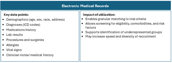 With these integrations, clinical trials can achieve faster, more cost-effective recruitment of relevant and diverse patient cohorts, ultimately reducing study timelines and improving the generalizability of trial outcomes. This approach supports the broader goal of bringing safe and effective therapies to patients more rapidly and equitably.15,16