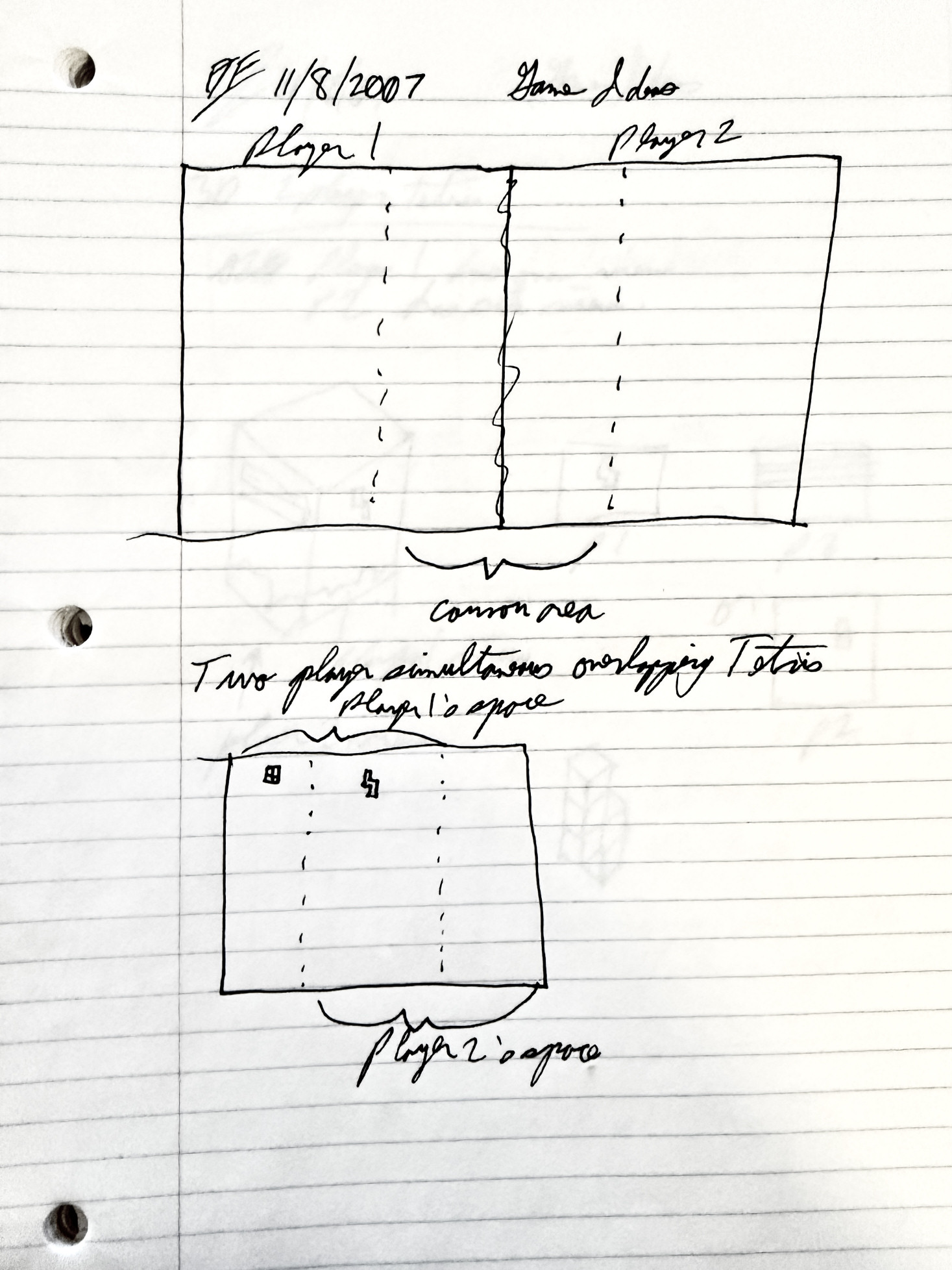 Benj 手写的关于两人游戏的设计笔记俄罗斯方块2007年的概念。信用:本杰·爱德华兹