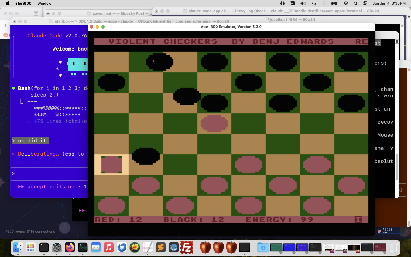 Benj 的 Mac 工作时的屏幕截图暴力跳棋Atari 800 家用电脑的端口以及其他项目。信用:本杰·爱德华兹